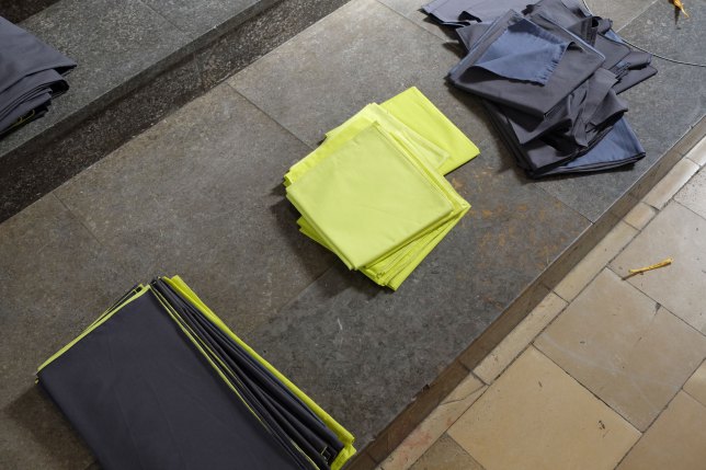 In her spatial installation "khrōma" Gabi Schillig explored the space of the church St. Christophorus in Berlin-Neukölln. Through the implementation of colored, suspended textile structures - in reference to the principle of the "soziale Plastik" - she asked questions about the interactivity of space and its perception.